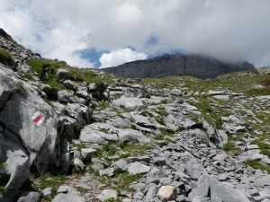Die Wanderstrecke führt uns über ein paar Schneefelder. Mit Wanderschuhen ist dies kein Problem, aber profillose Schuhe und auch Turnschuhe bergen die Gefahr, dass der Träger abrutschen kann.